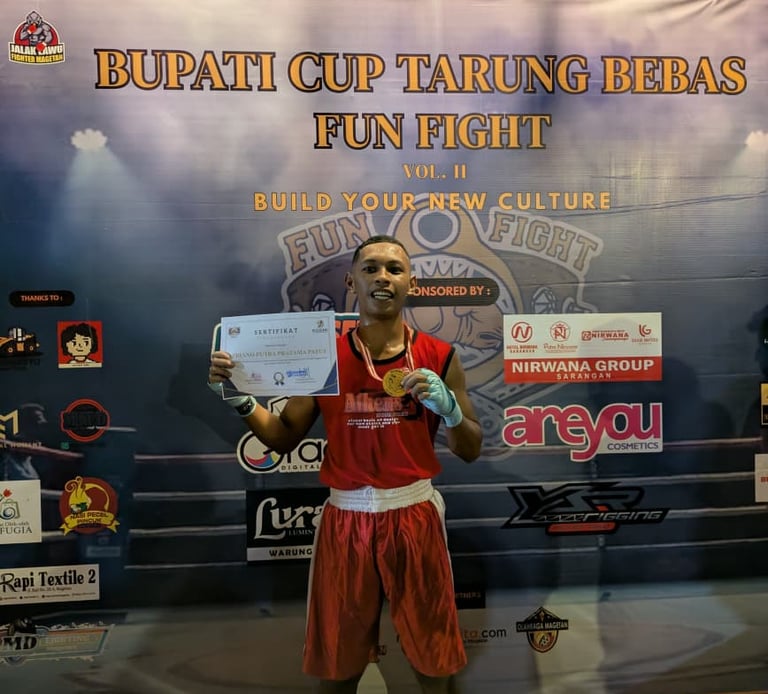 Apriano Putra Pratama Patut merupakan putra Manggarai yang dikenal sebagai salah satu atlet tarung bebas yang berprestasi. Ia berhasil meraih medali emas pada Kejuaraan Tarung Bebas Piala Bupati Magetan 13 desember 2025 sebuah pencapaian yang membanggakan sekaligus menjadi bukti nyata dari kerja keras, kedisiplinan, dan semangat juang yang terus ia bangun selama bertahun-tahun. Prestasi ini tidak diraih secara instan, melainkan melalui proses latihan yang konsisten, pengorbanan waktu, serta komitmen kuat untuk terus mengasah kemampuan di bidang olahraga bela diri. Keberhasilannya meraih medali emas tidak hanya mengharumkan nama pribadi, tetapi juga membawa kebanggaan bagi keluarga, komunitas, dan daerah asalnya.